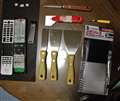 購入したもの、スクレパー、両面テープ(厚さ0.15mm 車用 ゴム面にも対応のもの)、ピンセット(手の汚れが両面テープに付着が心配で)、切れ味の良い工作用ハサミ。