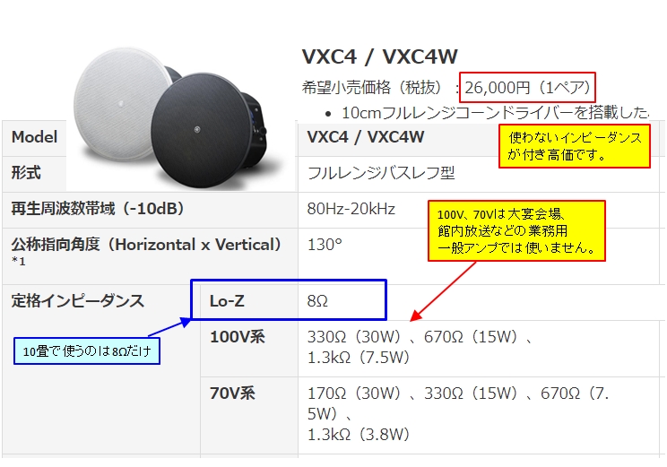 『業務用はインピーダンス切替え付き』ヤマハ VXC4W [ホワイト ペア] あいによしさんのクチコミ掲示板画像1/3