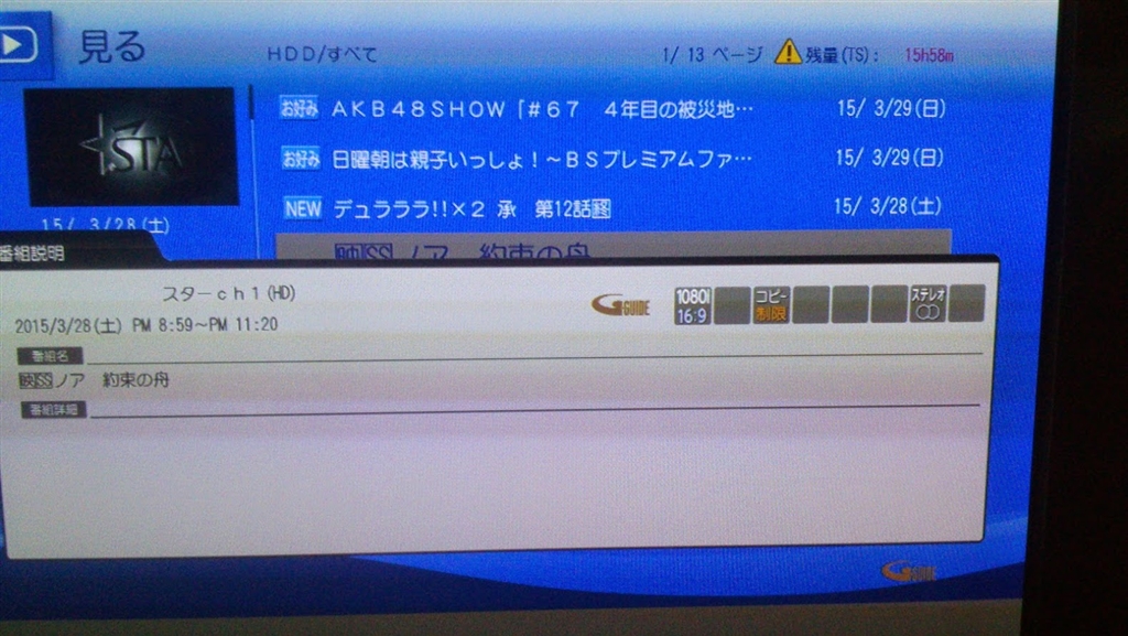 『番組詳細がない!』マクセル アイヴィブルー BIV-TW1000 GCS-50さんのクチコミ掲示板画像1/1