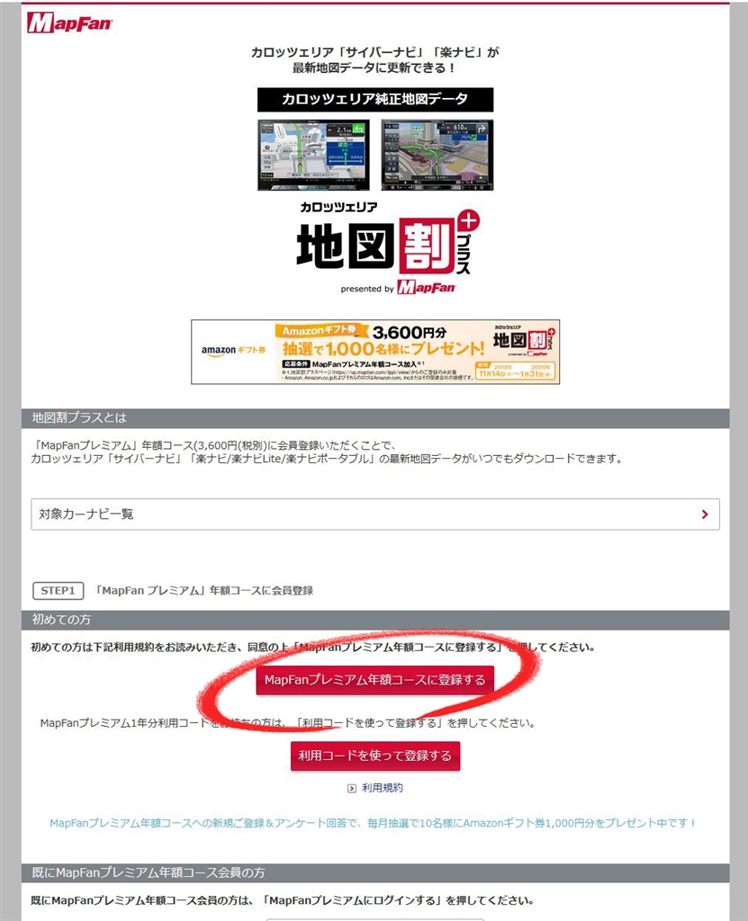 [図2] MapFanプレミアム年額コースを選ぶ
