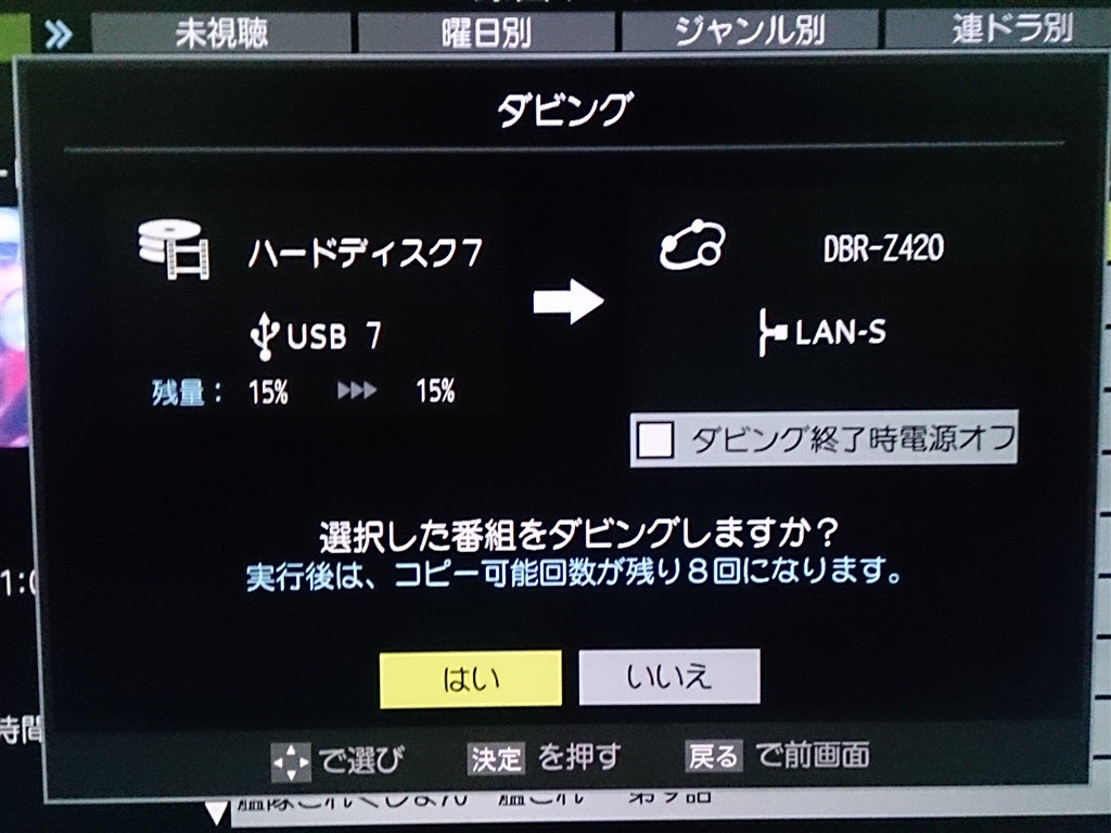 TVからレコーダーへレグザリンクダビングを指示