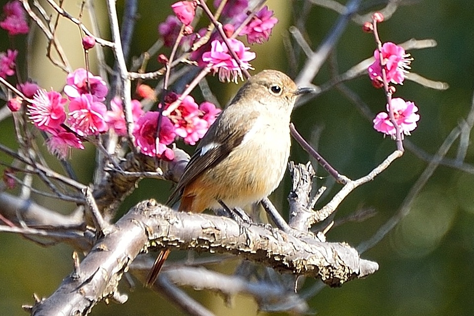 紅梅とジョウビタキ?