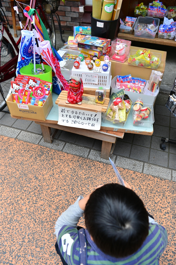 おもちゃ屋から離れない……。