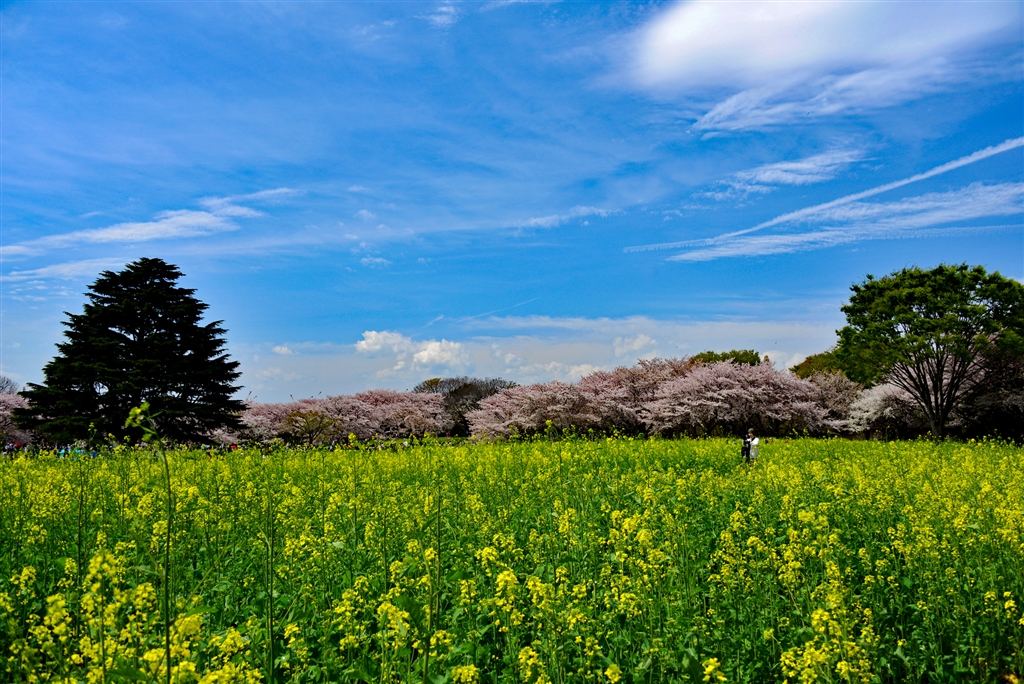 菜の花と桜 昭和記念公園