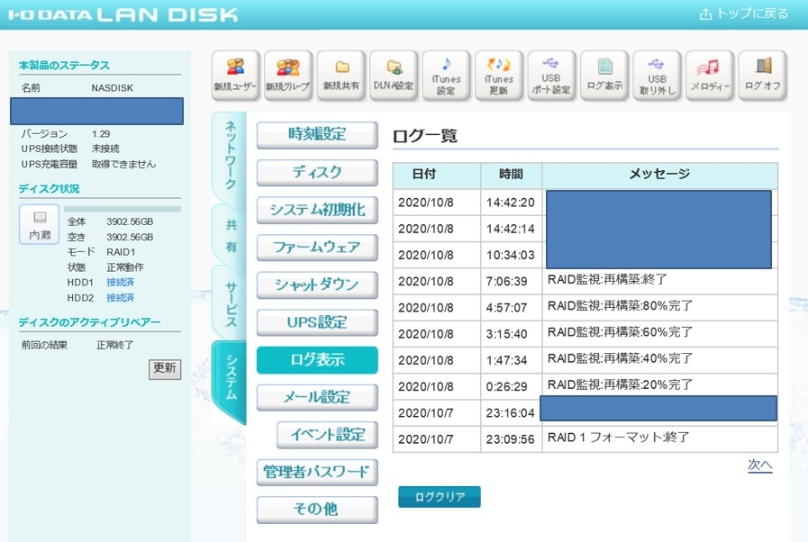 『4TB認識』IODATA LAN DISK A HDL2-A4.0R/E ひ★つ★じさんのクチコミ掲示板画像1/1