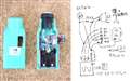 写真の薄緑色のアダプターは自作したものです。