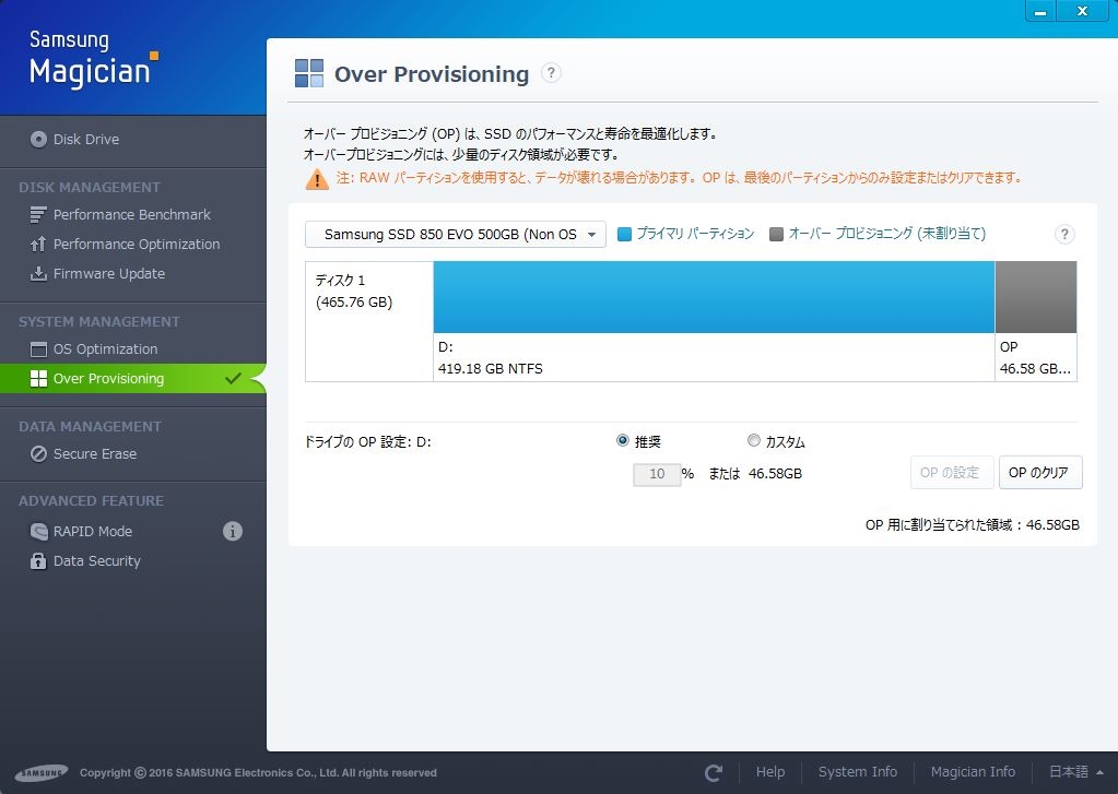 『Magician 4.9.7_OP設定完了』サムスン 850 EVO MZ-75E500B/IT 夏のひかりさんのクチコミ掲示板画像2/4