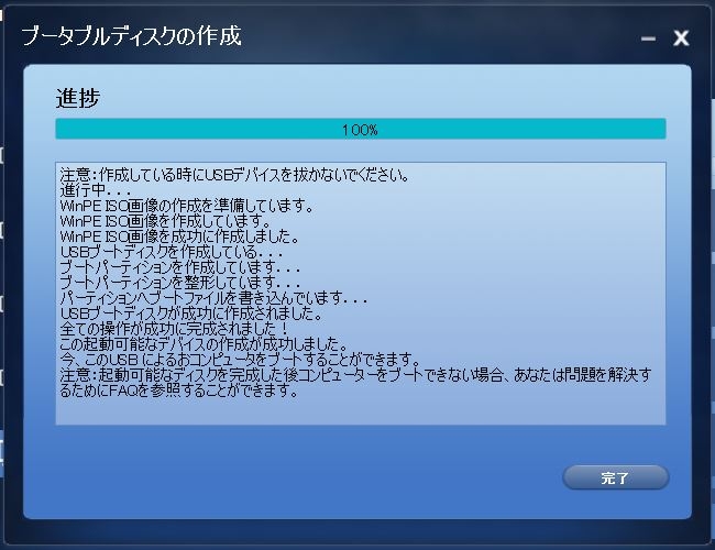 USBブータブルディスクの完成