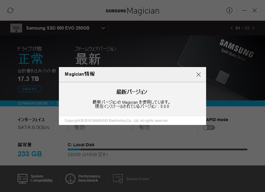 『Magician 5.0.0』サムスン 850 EVO MZ-75E250B/IT 夏のひかりさんのクチコミ掲示板画像1/1