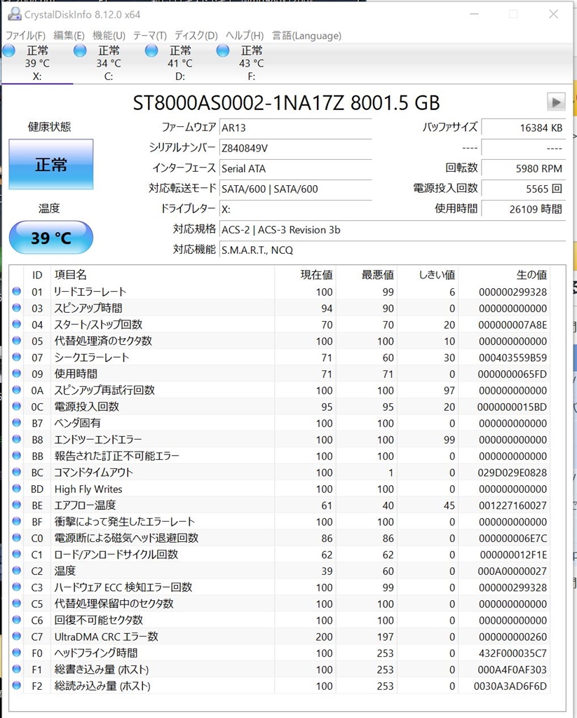 SEAGATE ST8000AS0002 [8TB SATA600] win7-64bitさんのクチコミ掲示板画像1/1