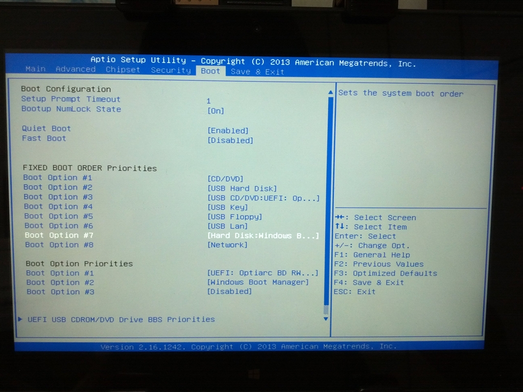 もともとのBIOSの設定
