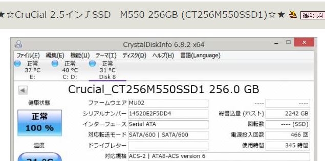 『総書込み量、使用時間』crucial CT250MX200SSD1 あずたろうさんのクチコミ掲示板画像1/1