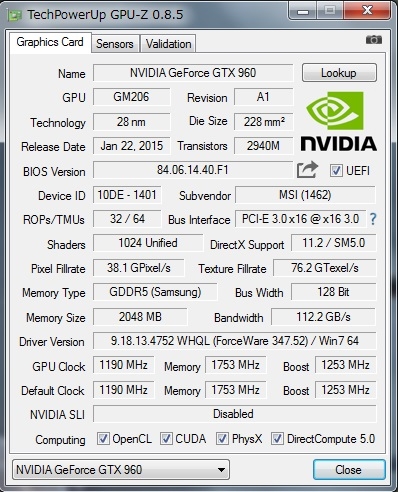 GTX 960 GAMING 2G [PCIExp 2GB]