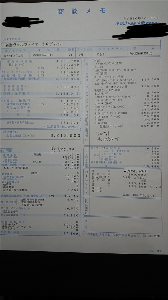 「ヴェルファイア見積り 値引き」 トヨタ ヴェルファイア 2015年モデル みみぬこまるさんのクチコミ掲示板画像1/2