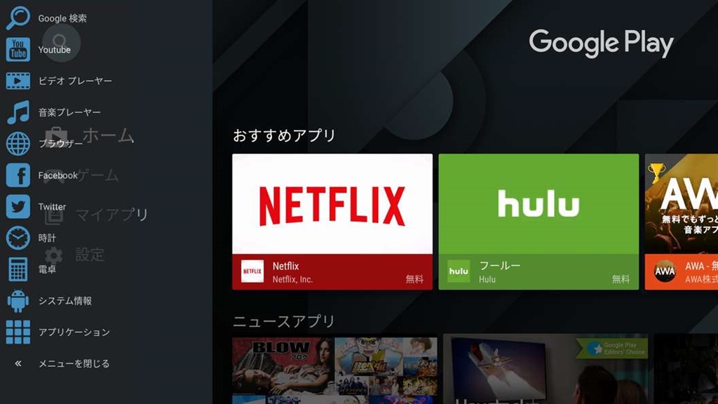 『サイドメニュー』Google Nexus Player ヤス緒さんのクチコミ掲示板画像1/3