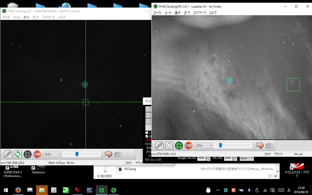左:オートガイダー(M27)、右:電子ファインダー(や座付近)
