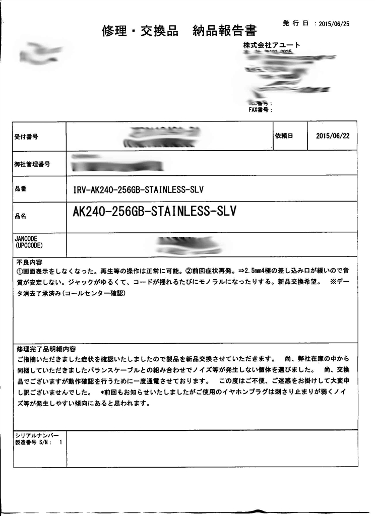 『1回目の修理』Astell&Kern Astell&Kern AK240-256GB-STAINLESS-SLV [256GB] smile_smile_smileさんのクチコミ掲示板画像1/3