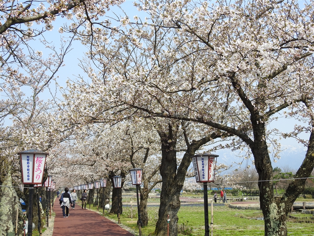 湖周回の歩道の桜並木
