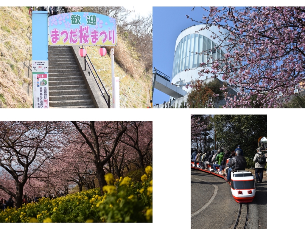 菜の花、しだれ梅、ハーブ?、河津桜です