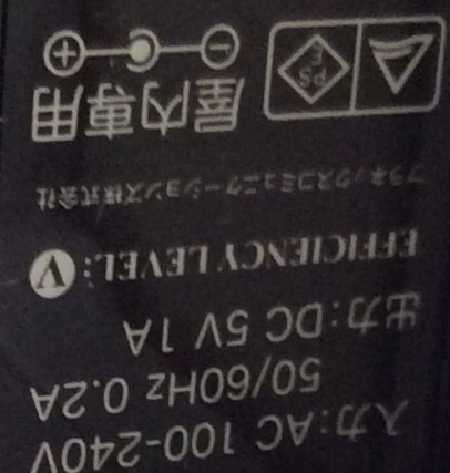 ACアダプターの注意書き部分