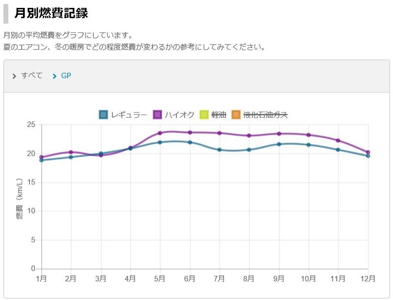 みんカラユーザー月別燃費