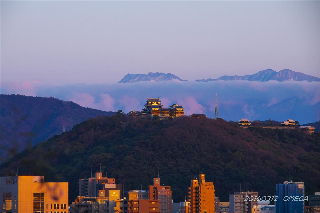 石鎚連山と松山城 b 03・12