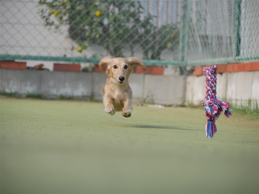 ハナちゃんとおもちゃ、どちらにもピントが合っていません