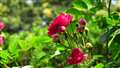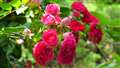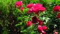つる薔薇の細い茎に重い花を沢山付けているので、ちょっとしたそよ風でも揺らぐ。