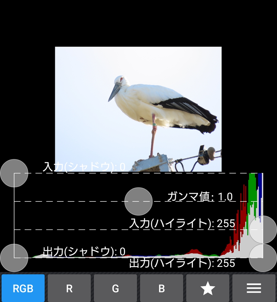 これ以上のプラス露出はコウノトリの後頭部から白飛びが侵食していくので諦め