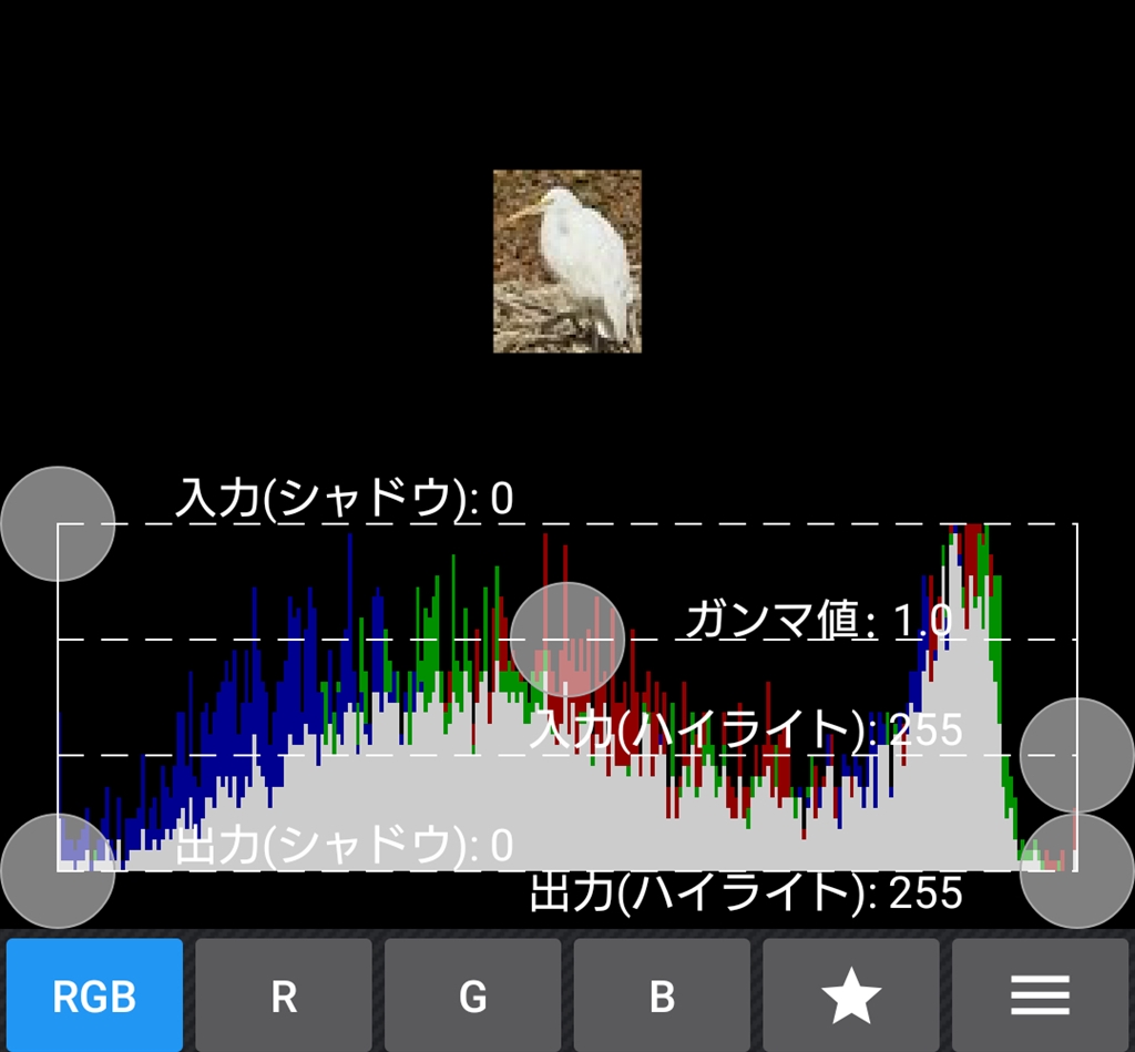 スレ主さんの露出補正画像をトリミングしてヒストグラム表示
