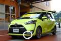 シエンタの個性的な形に色選びで迷いましたが、ラディアントグリーンとブラックのツートンでMOP16インチ、純正リアスポのみの外装仕様です。