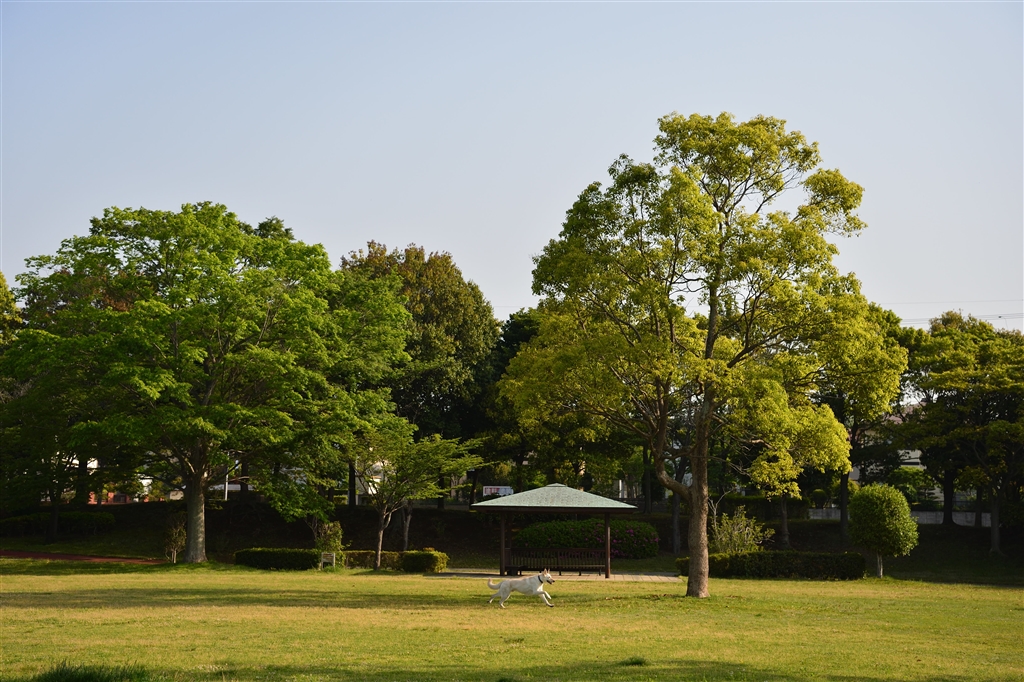 @新緑の中 ワンちゃんの朝散歩