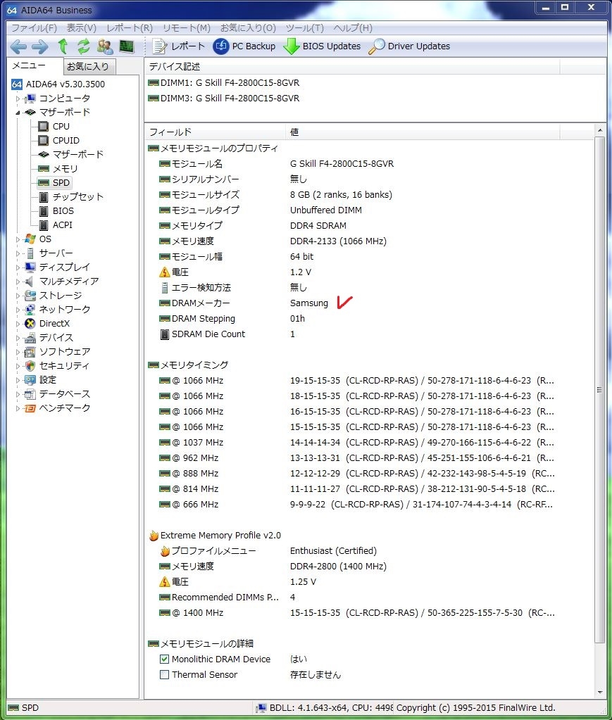 G.Skill F4-2800C15D-16GVR [DDR4 PC4-22400 8GB 2枚組] オリエントブルーさんのクチコミ掲示板画像1/1