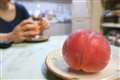 二枚目の桃もジャスピンまでは行かない(皿がジャスピン)までも、マクロレンズじゃないので、十分な写り。
