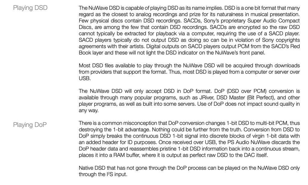 『説明書の記載部分』PS Audio NuWave DSD [ブラック] 響仁さんのクチコミ掲示板画像1/1