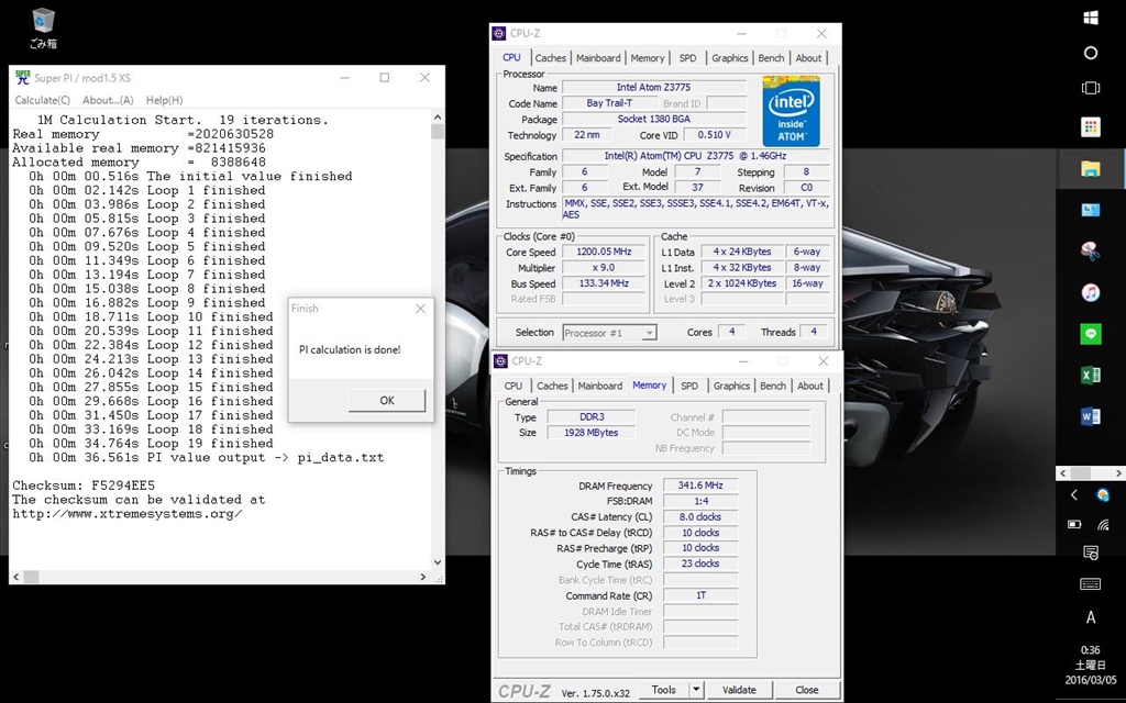 『パイ計算・CPU-Z』ASUS ASUS TransBook T90Chi T90CHI-3775 こぼくん35さんのクチコミ掲示板画像1/3