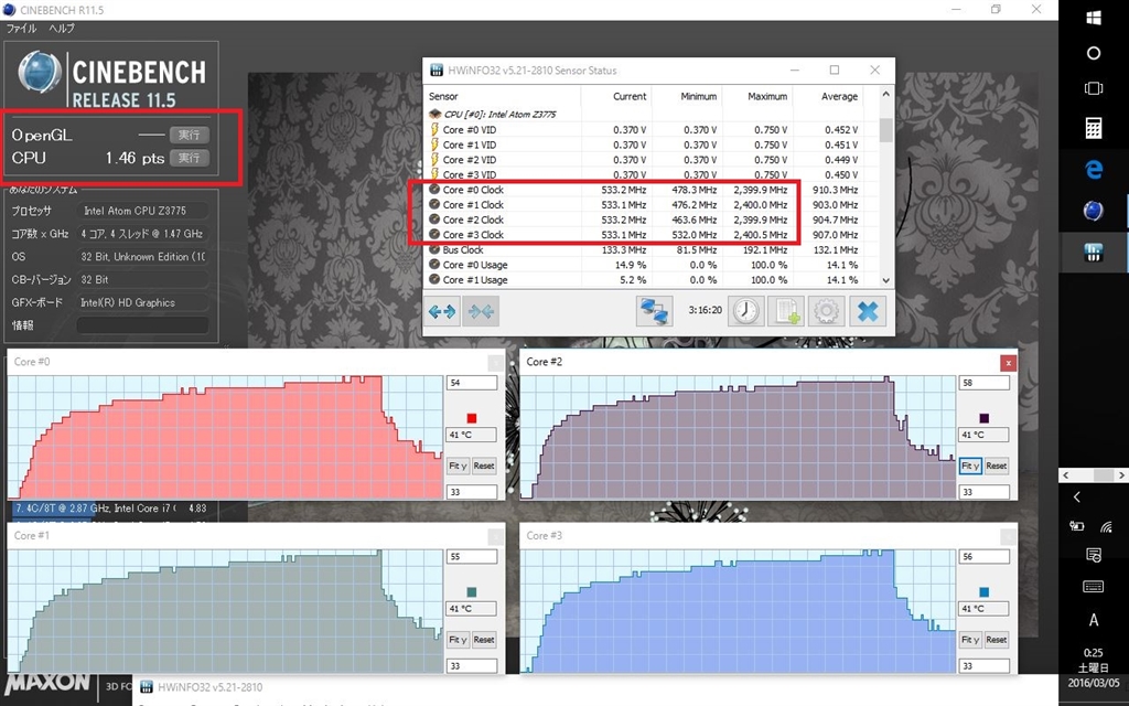 CINEBENCHI・温度・クロック