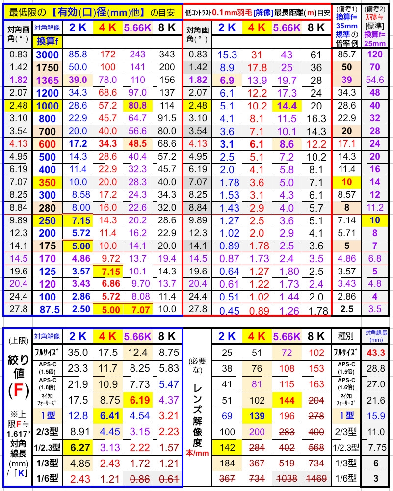 望遠(画角)と有効(口)径⇒分解能 ※上限F値修正
