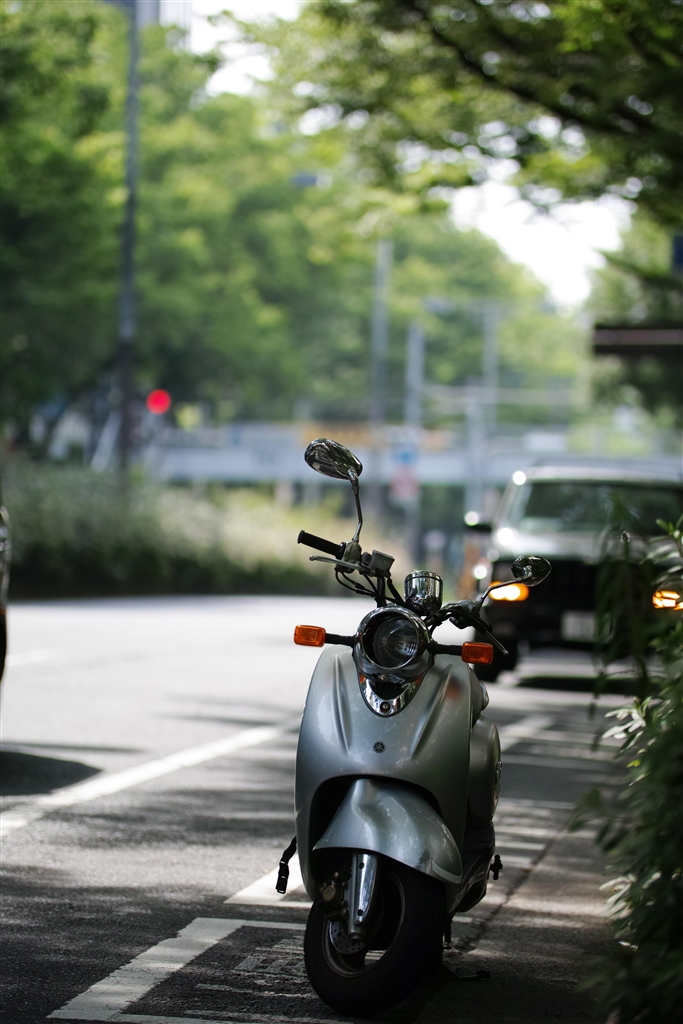 表参道に駐まっていたスクーター、金属の質感が良く表れています。
