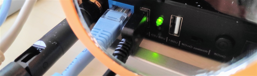 USBランプ点灯しています。すみません鏡にうつして撮影しているため見づらいです。