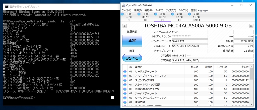 東芝 MC04ACA500 [5TB SATA600 7200] xmikeさんのクチコミ掲示板画像1/2