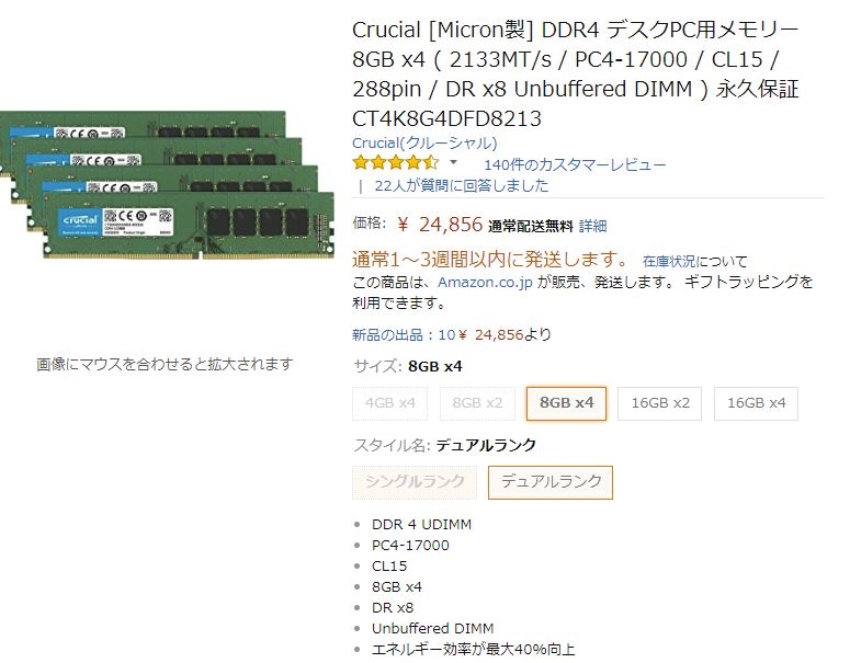 crucial CT2K8G4DFS8213 [DDR4 PC4-17000 8GB 2枚組] あずたろうさんのクチコミ掲示板画像1/1