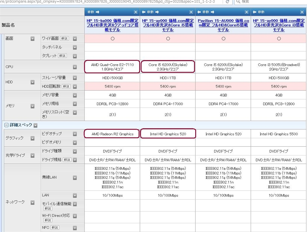 『スペック比較』HP HP 15-ba000 価格.com限定 フルHD非光沢&クアッドコア搭載モデル aboundさんのクチコミ掲示板画像1/1