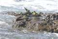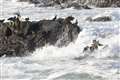 台風の影響で波が高く、波をかぶるアオバトさんが。