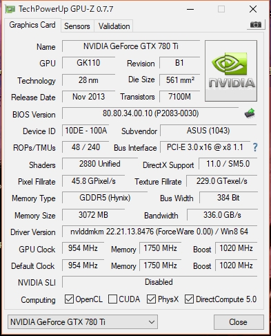グラボ1枚目GPU-Z(スロット1にて)結果