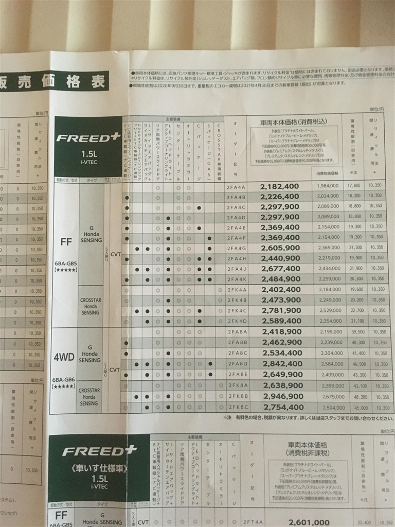 フリード+新車販売価格表 2019