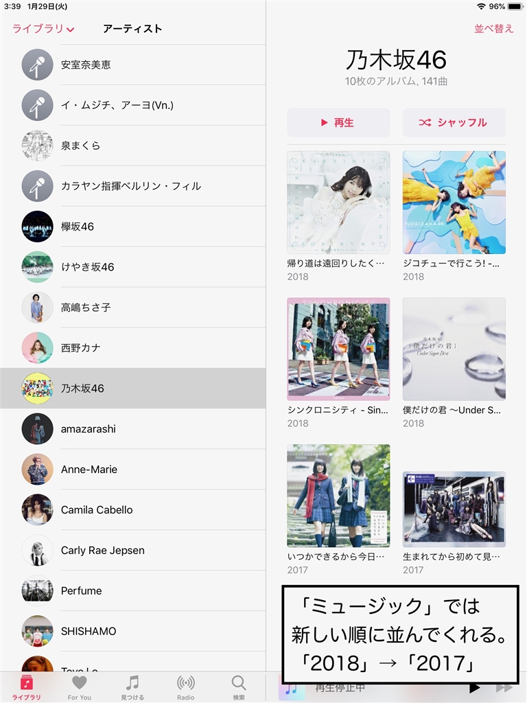 「ミュージック」では、新しい順に並んでくれる。