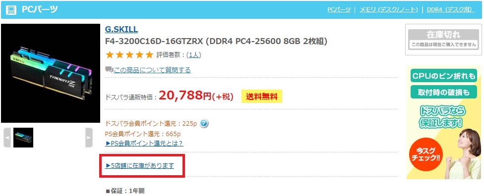 G.Skill F4-3200C16D-16GTZR [DDR4 PC4-25600 8GB 2枚組] お好み焼き大将さんのクチコミ掲示板画像1/1