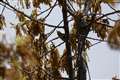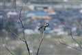 撮影場所から目視で見たこの野鳥は、小さくて茶色い羽色が多いので、目や羽模様が確認し難いシルエットでした。