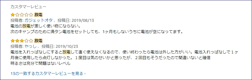 Amazonレビューコメント